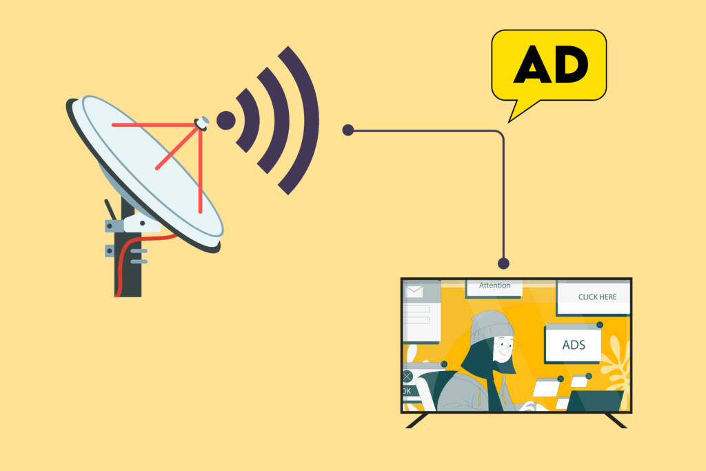DTH (Direct-to-Home) advertisement uses satellite technology to deliver targeted advertisements directly to viewers’ homes.